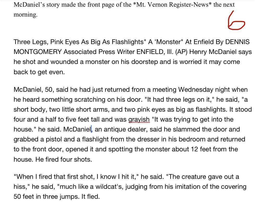 "In 1973, the town of Enfield, Illinois was gripped by fear after sightings of a strange creature with three legs, glowing red eyes, and an elephant-like trunk. In Seeing Dead People, Episode 62, Nicola and psychic medium D’Arcy dive deeply into the case. Without seeing a single photo, D’Arcy stuns by describing the monster’s bizarre features in eerie detail. What was really stalking Enfield that spring? D'Arcy's insights will amaze. Goosebumps Guaranteed!"